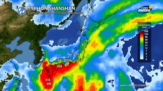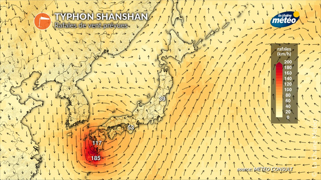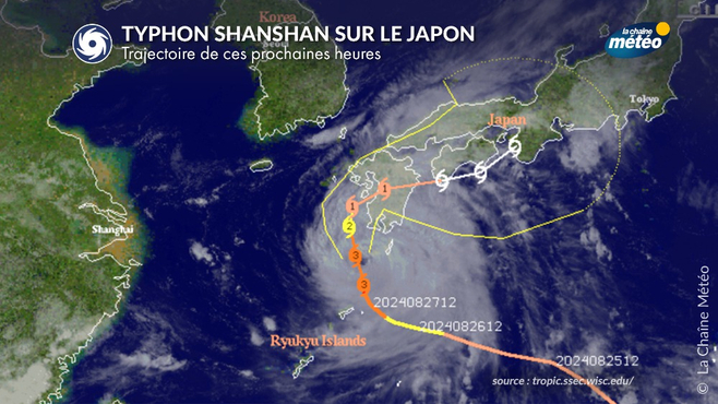 Deze woensdagavond, Japanse tijd tornado Shanshan ligt ten zuiden van het zuidelijke eiland Kyushu. Windsnelheden bereikten 168 km/u in Yakushima (de archipel in het zuiden) en er werd een cumulatieve regenval van 200 tot 300 mm geregistreerd in Okinawa. De tyfoon nadert nu het Kagoshima-gebied met windsnelheden die ook aan de kust 150 tot 200 km/u kunnen bereiken, en zal naar verwachting categorie 2/5 bereiken voordat hij donderdag zwakker wordt. Daarom is het een orkaan van ongebruikelijke kracht voor dit geografische gebied. Maar er wordt gevreesd voor bijzonder zware regenval, een dreiging die de autoriteiten serieus hebben genomen en die het treinverkeer al hebben afgesloten. Ook het luchtverkeer begon er last van te krijgen, met de annulering van veel binnenlandse en internationale vluchten. Er zijn al verschillende slachtoffers gevallen bij aardverschuivingen die volgden op zware regenval.